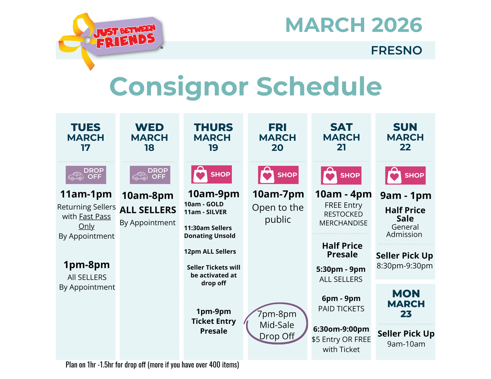 Download your Seller Guide to get started on these steps: Gather, Sort, Price, Prep and Drop Off